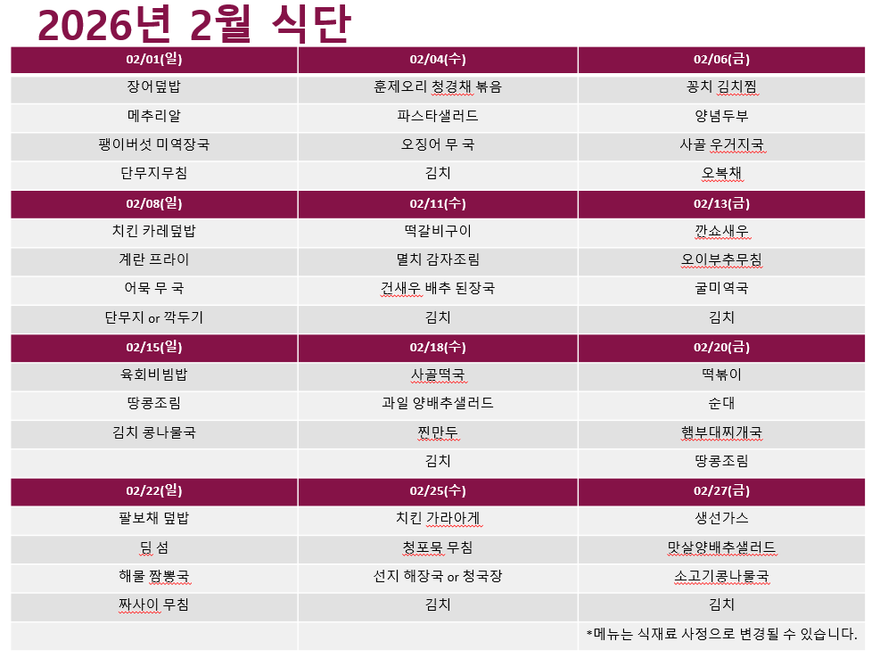 명동밥집 2026년 02월 식단표