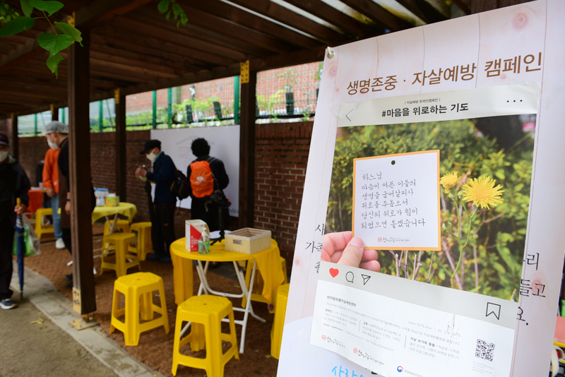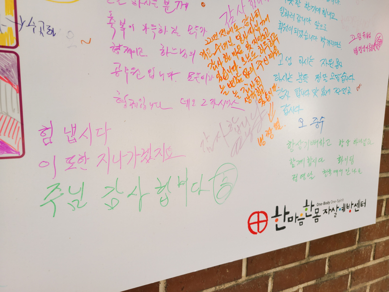 이에 한마음한몸자살예방센터에서는 지난 5월 14일부터 매주 금요일마다 명동밥집을 찾는 분들로 하여금 그들 스스로가 정신 건강 취약성에 대해 바르게 이해하고, 그들의 소외된 마음을 어루만져 주기 위한 정서적 지원 캠페인을 펼치고 있습니다.