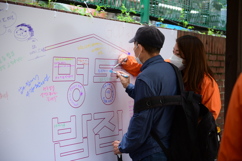 명동밥집 노숙인 자활 지원 프로그램의 일환 한마음한몸자살예방센터와 함께 [생명사랑 캠페인] 진행