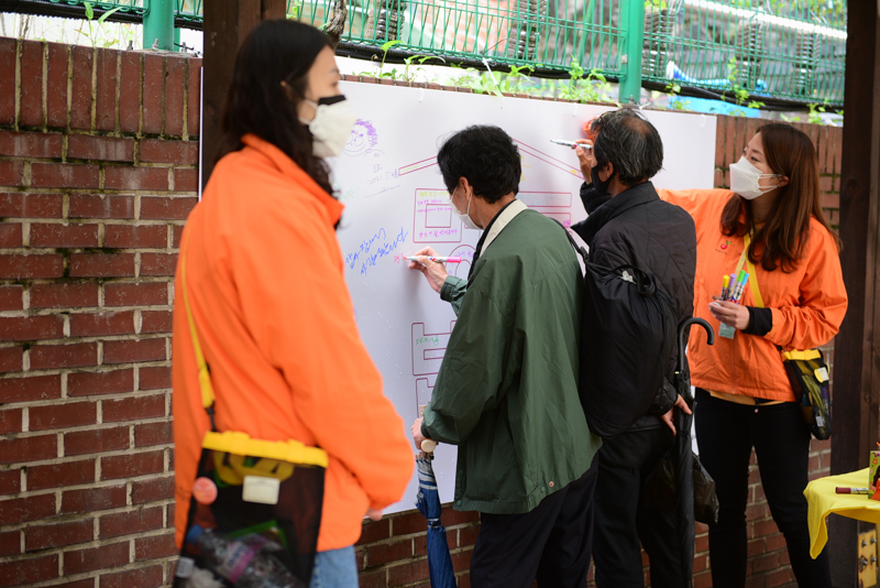 이렇게 완성된 컬러링 엽서나 그 분들의 표정을 담은 사진 그리고 그들의 목소리를 들을 수 있는 아트월 제작물은 전시하고, 함께 이야기를 공유함으로써 발자취 없이 떠돌아다니는 그들의 존재에 대해 다시금 생각해보고, 서로가 서로에게 관심을 갖고 우리가 그들의 흔적을 기억하고 있음을 알려주기 위한 프로그램입니다