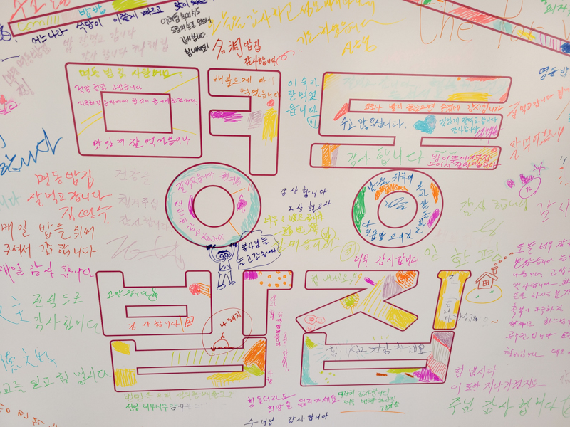 이날은 비가 내리는 등 궂은 날씨로 인하여 명동밥집 인쇄물에 주위 분들에게 감사의 인사 같은 따스한 말씀 건네기 캠페인을 진행했는데요.