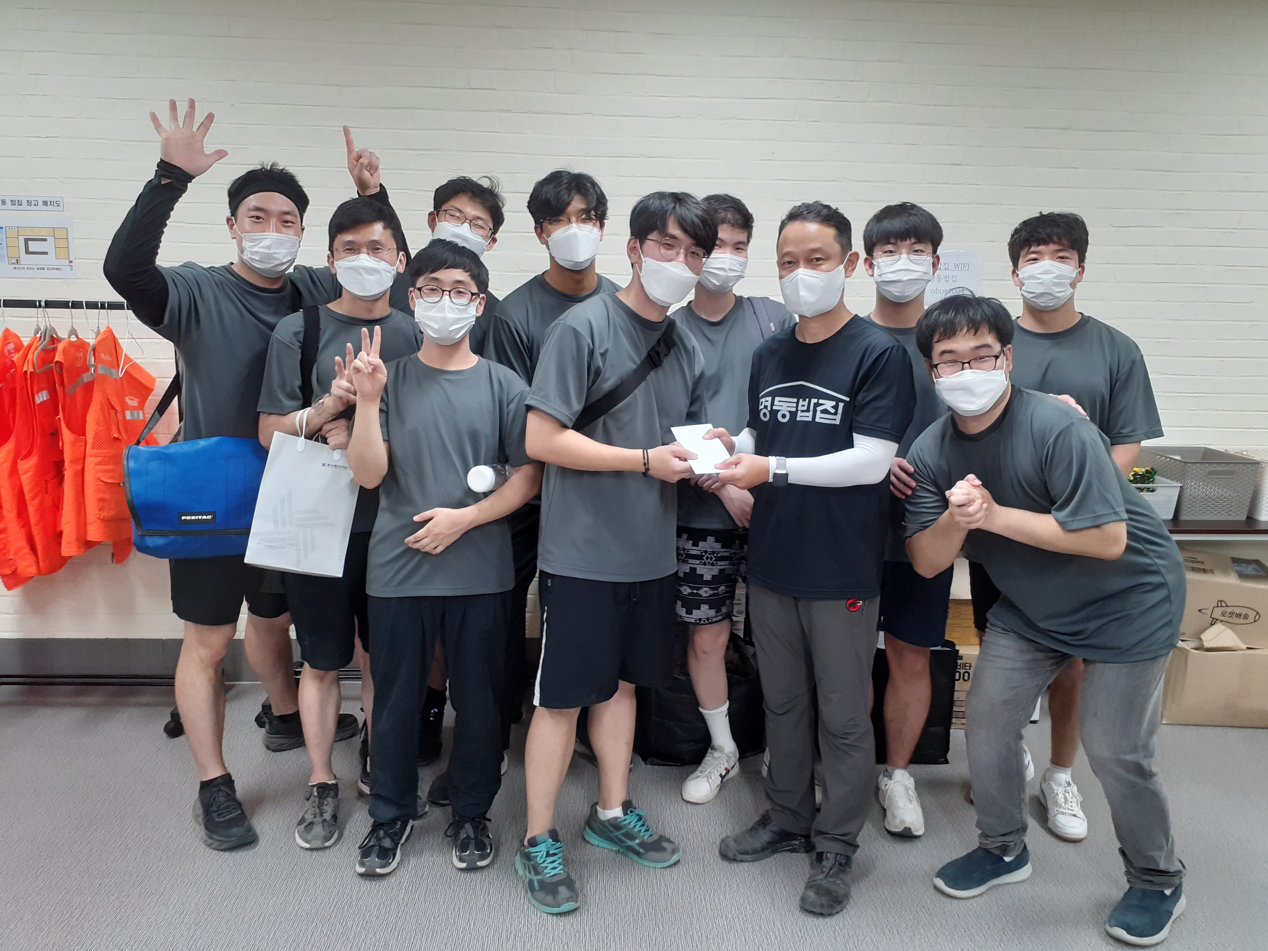 무더운 날씨 속에도 노숙인들의 한 끼 식사를 위해 열심히 뛰어다니며 식사에 필요한 집기도 나르고, 식재료 준비부터 배식, 설거지까지 힘든 내색 없이 능숙하게 일손을 도왔고, 또 같은 조원들끼리 마음을 모아 마련한 20만원을 봉사 후 명동밥집에 후원해 주셨습니다.