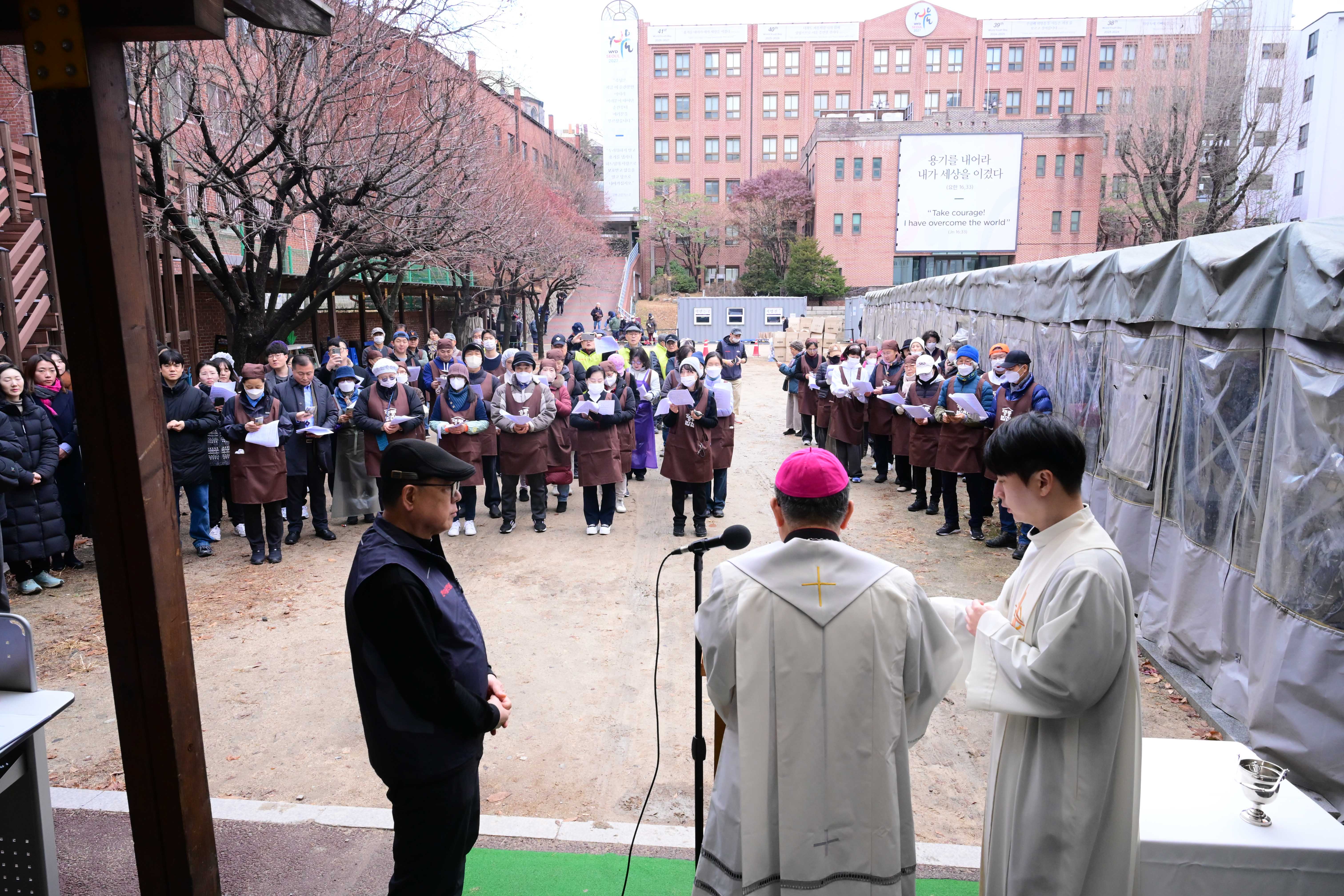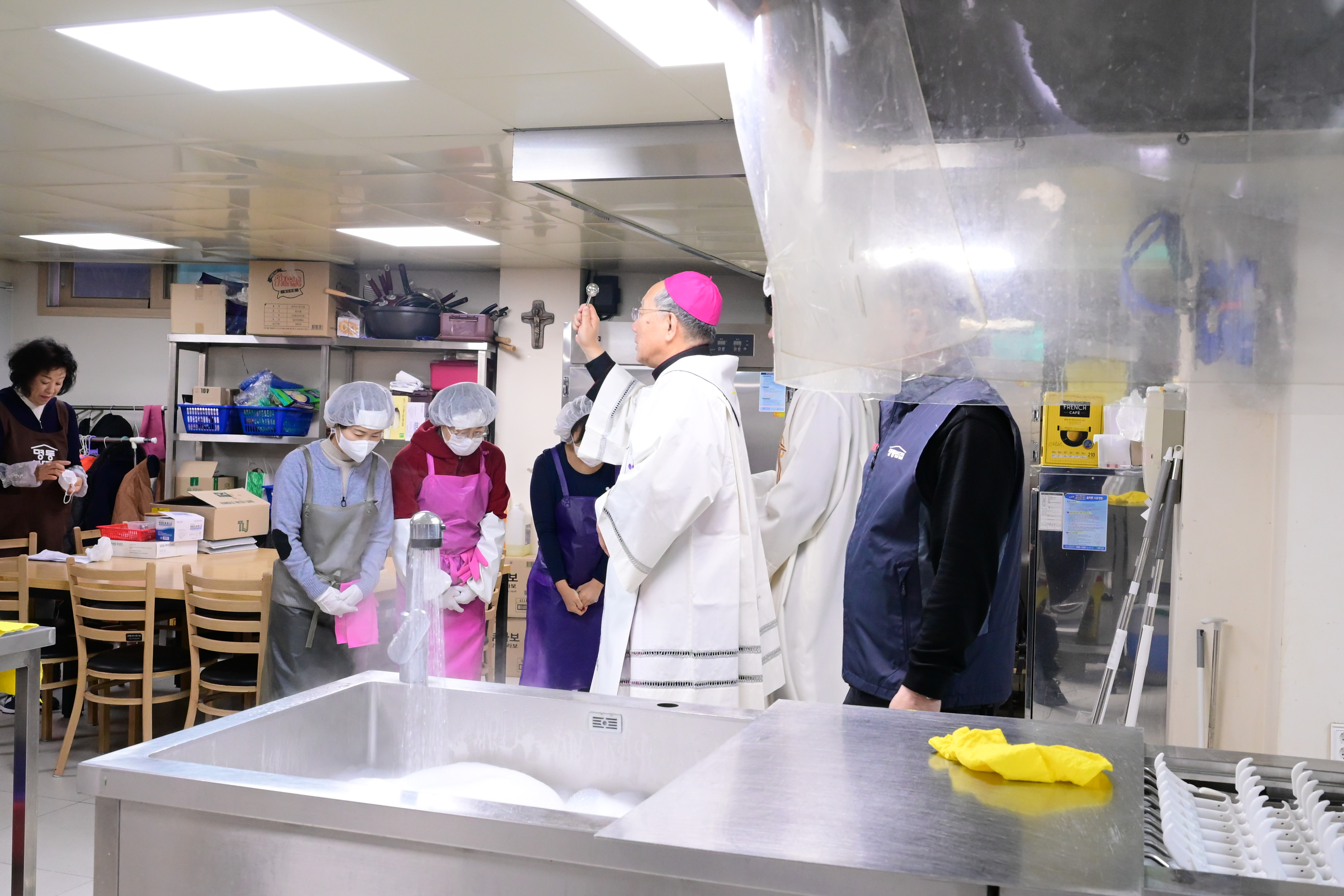 2025년 12월24일 성탄절을 하루앞둔 날 서울대교구 총대리 주교이신 구요비 욥 주교님의 주례로 명동밥집 실내배식을 위한 축복식이 있었습니다.